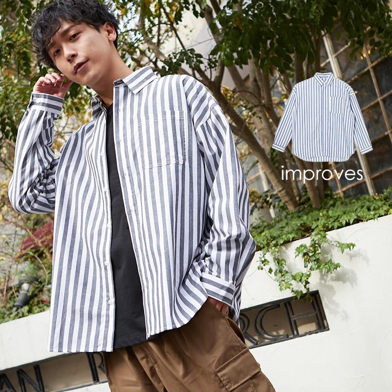 ストライプシャツ メンズ ビッグシルエット シャツ 長袖 ビッグシャツ オーバーサイズ ロング丈 長袖シャツ 黒 白 Improves インプローブス 通販 Yahoo ショッピング